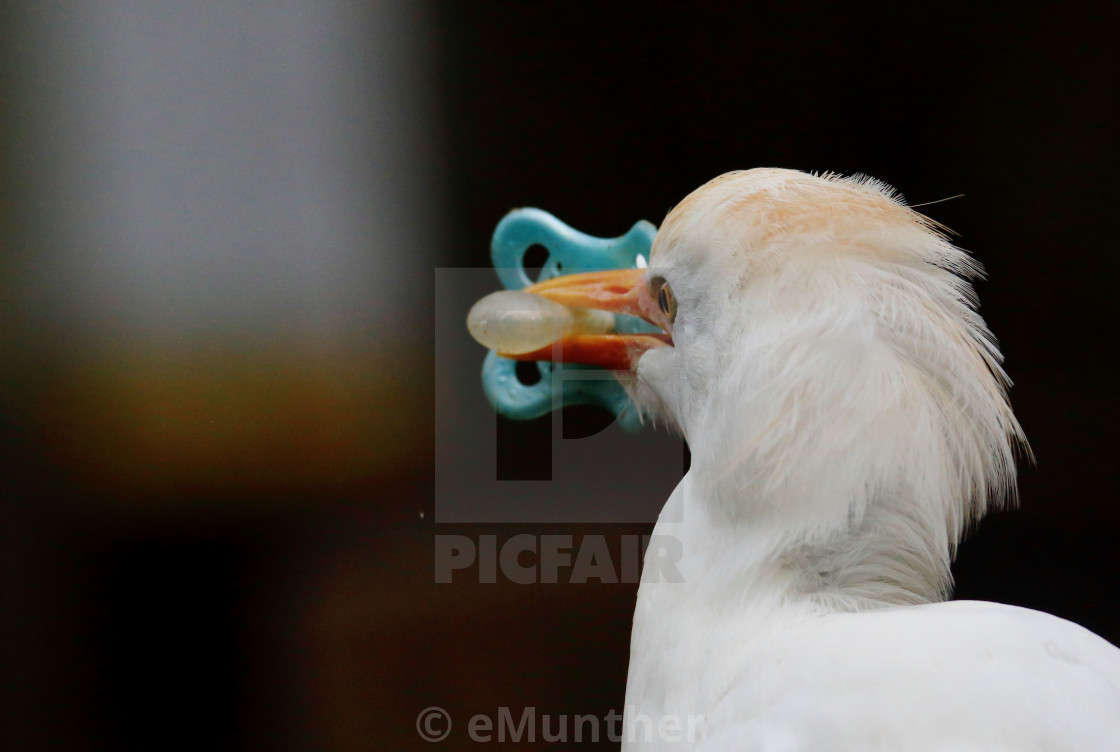 In the zoo, this cattle heron found a pacifier in the water!