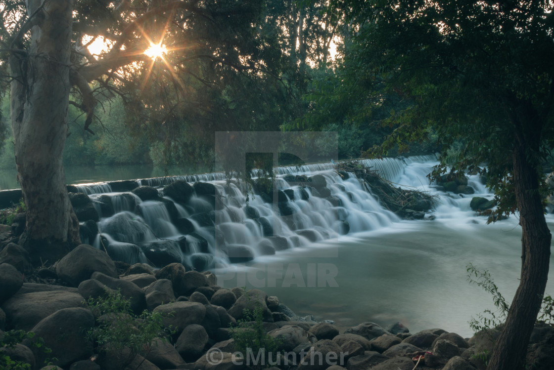 Sunburst over tiny falls in Jordan River!